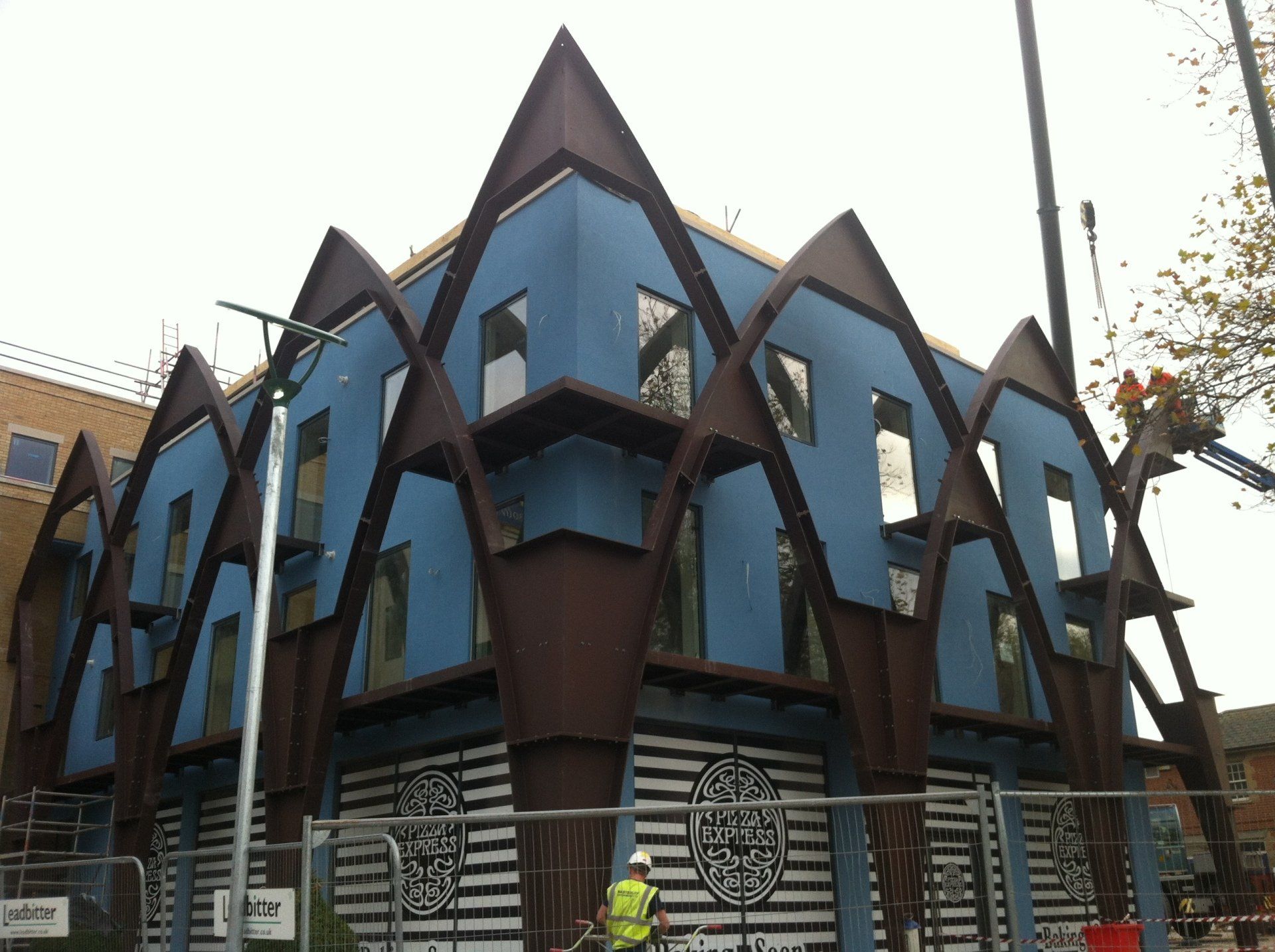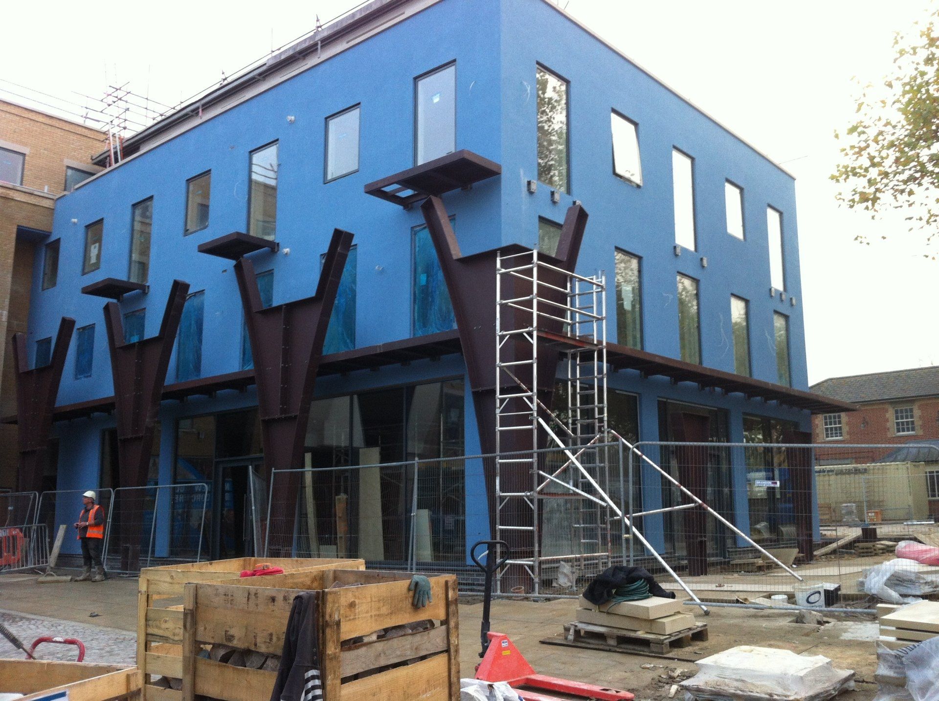 This striking new development in the centre of Dorchester was just the kind of project that we excel in, producing a bespoke structure, from drawings, in this case formed from 15mm steel plate. When finished the entire installation weighed an impressive 48 tonnes. M J Ellis worked alongside Sapphire Balustrades on this challenging project.